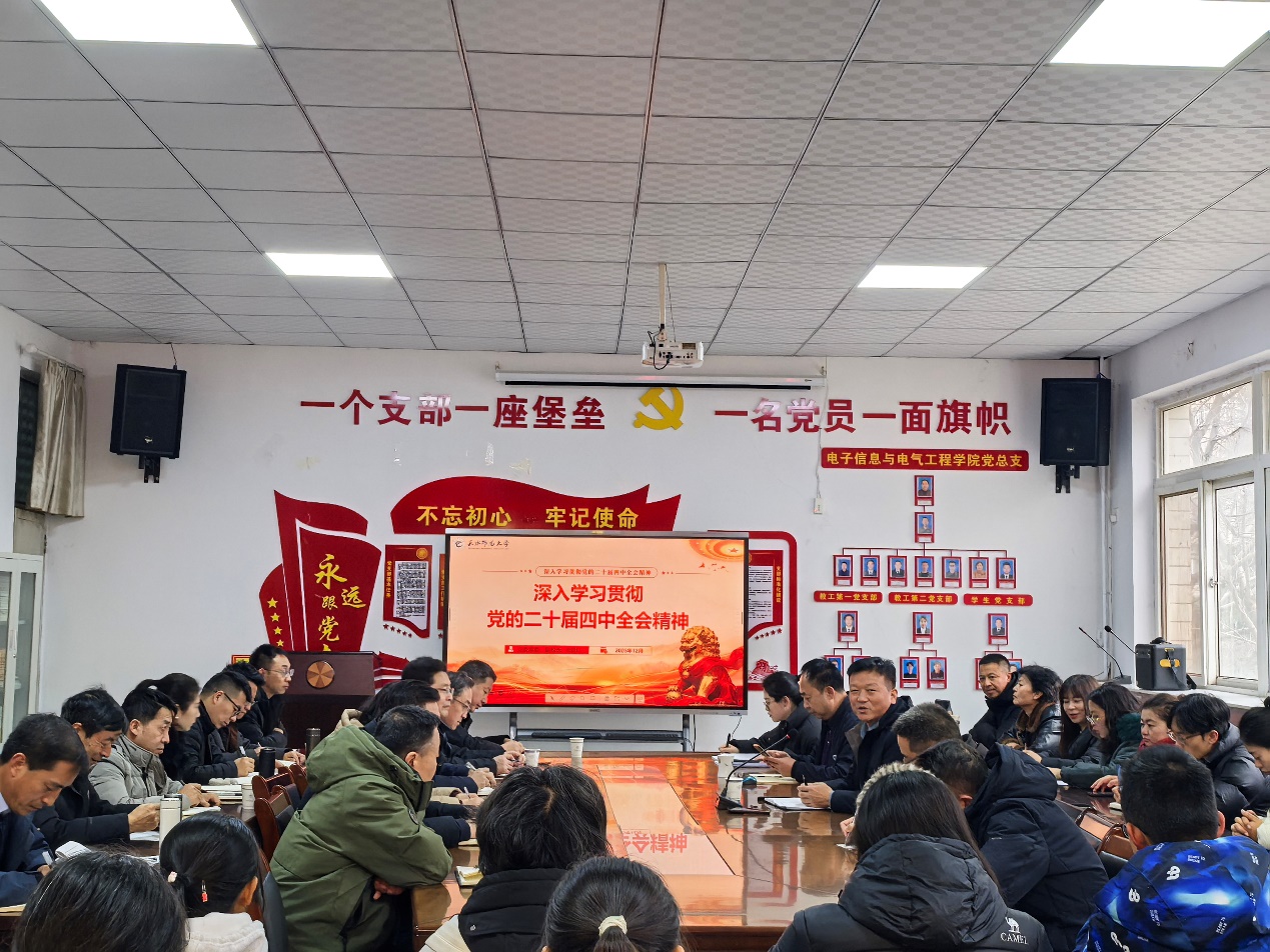 为深入学习宣传贯彻党的二十届四中全会精神,推动党的二十届四中全会重要部署与各部门各学院实际工作深度融合,12月31日,党委常委、副校长张登红为实验室建设与国有资产管理处、基建处、信息化建设与服务中心、科技园、电子信息与电气工程学院、教师教育学院等部门教师代表和学生党员宣讲党的二十届四中全会精神。